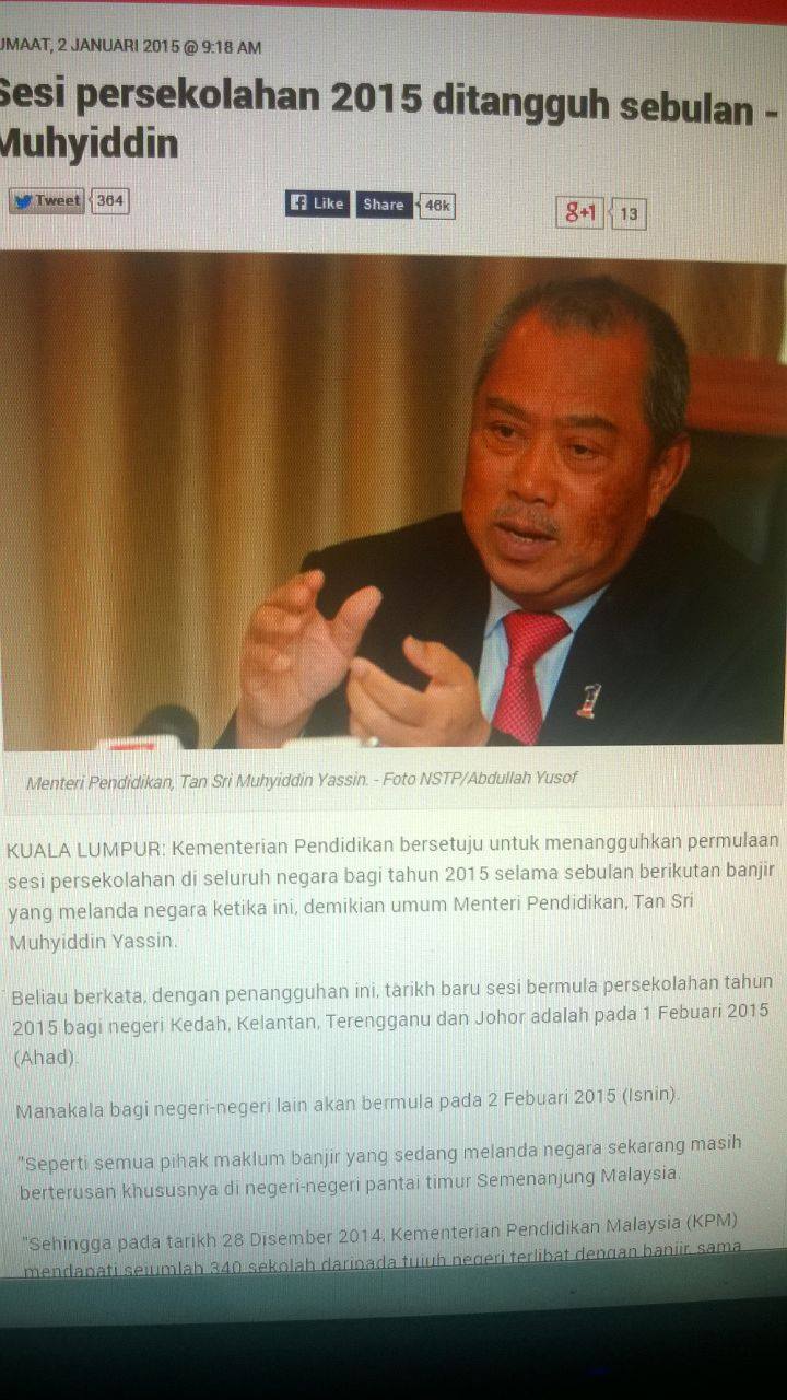 Tular di media sosial dakwaan bahawa sesi persekolahan 2015 ditangguhkan selama sebulan berikutan banjir yang melanda negara.